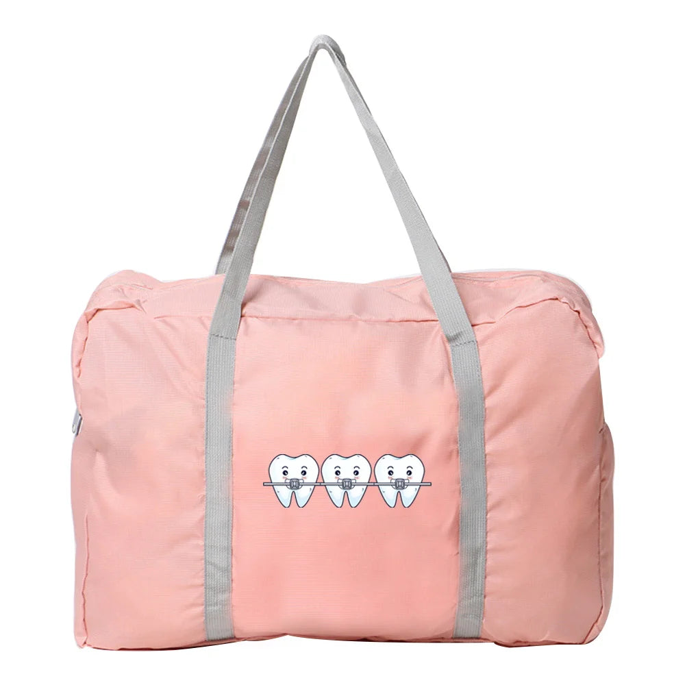 Stay organized and stylish on the go with this water-proof foldable travel bag featuring a teeth series print. Made of durable nylon, this casual handbag offers a spacious interior and a comfortable shoulder strap.