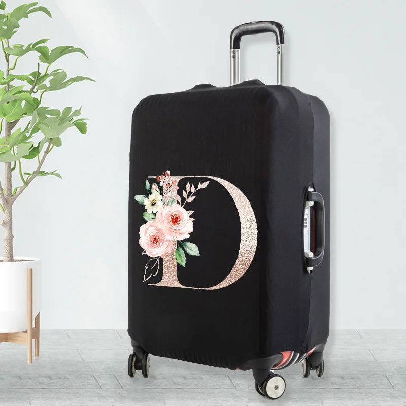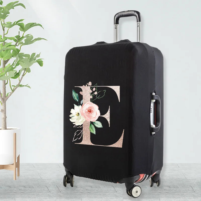 Watercolor Flowers Peach Rose Letters Luggage Cover 18-32 Inch