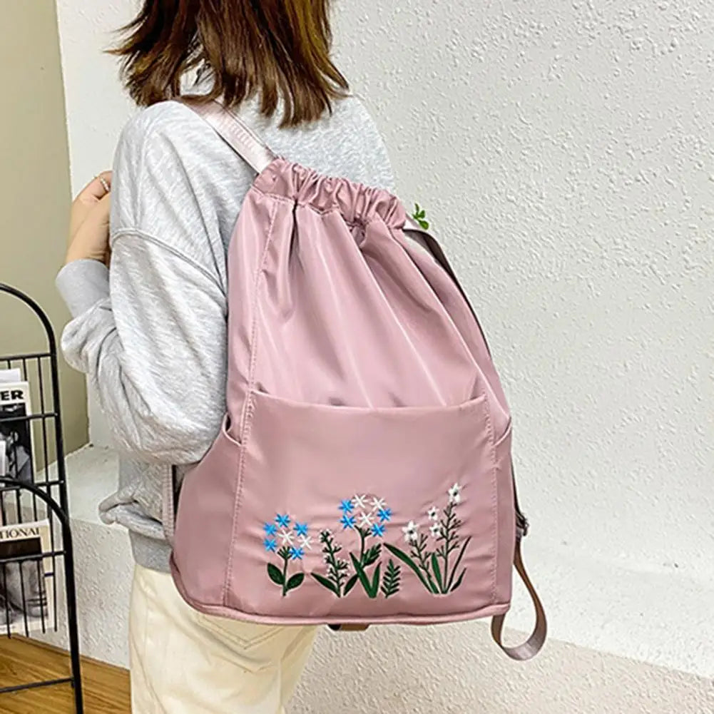 - Waterproof drawstring backpack with flower print embroidery