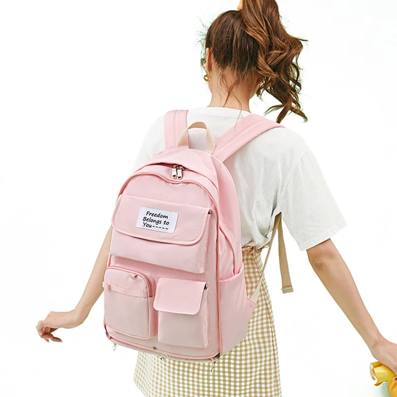 Waterproof Girls Backpack Large Capacity Solid Travel School Bag