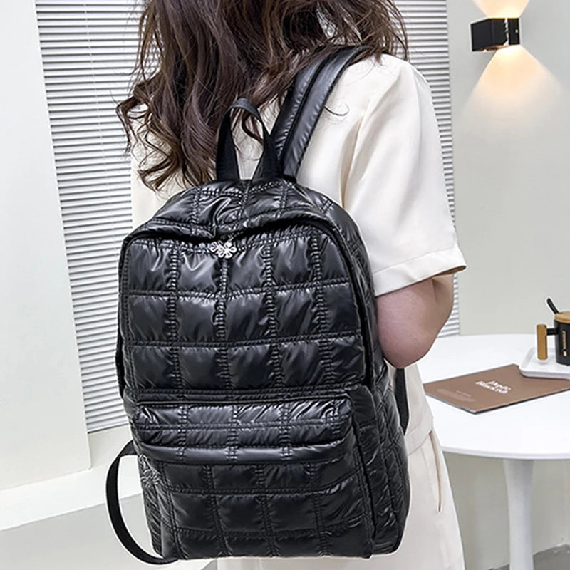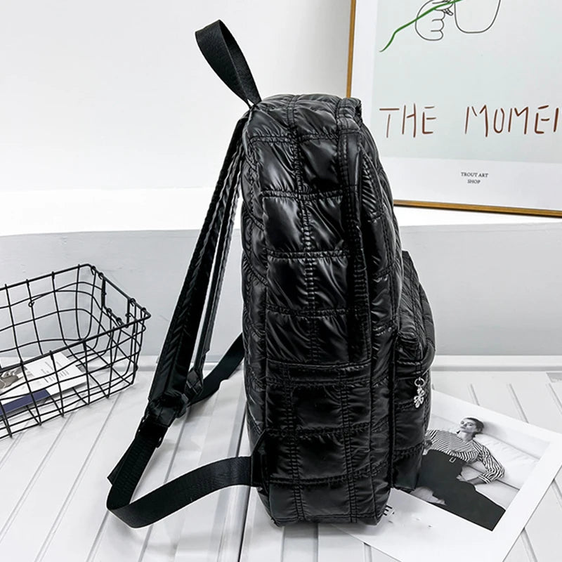 Stay stylish and organized with this spacious nylon backpack. Perfect for travel, school, or casual outings. Features a large capacity and comfortable space cotton material.