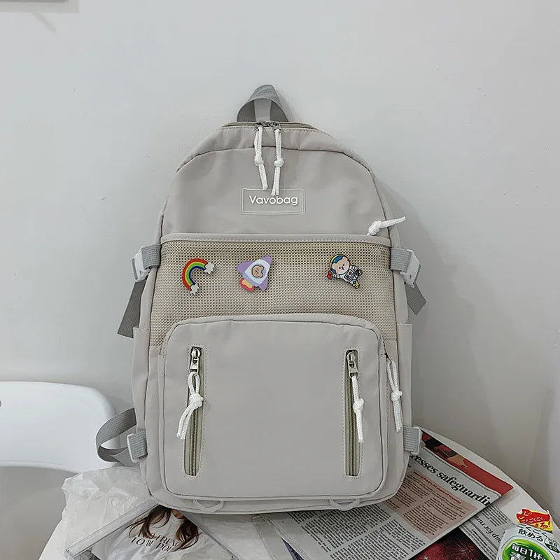 This school bag is designed for female students and features a waterproof exterior, ideal for outdoor travel. It has a large capacity to hold all school essentials.