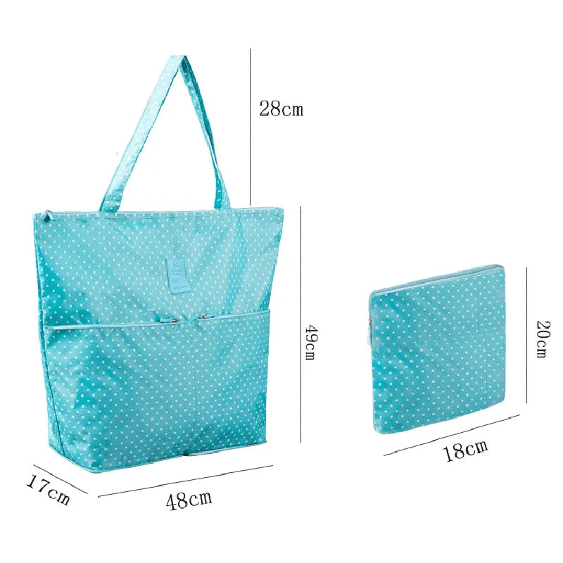 This waterproof shopping bag is perfect for carrying groceries, fruits, vegetables, and other items. It's foldable design makes it easy to store and carry around.