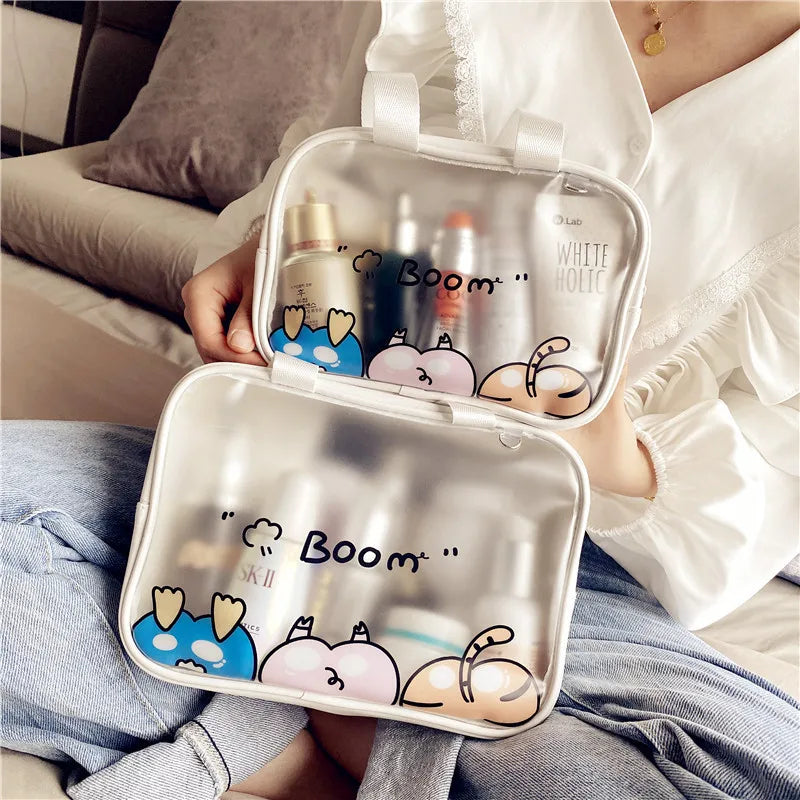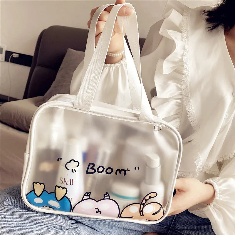 Stay organized on the go with this waterproof transparent tote bag, perfect for storing cosmetics, skincare products, and makeup essentials.