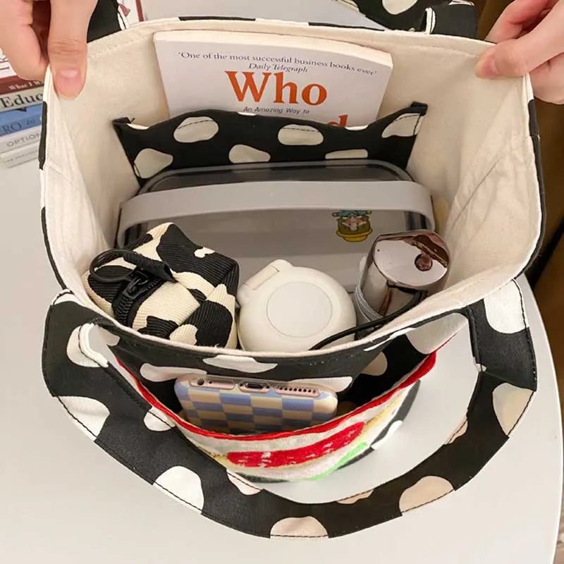 Wave Point Canvas Shoulder Bag Girl Bucket Purse