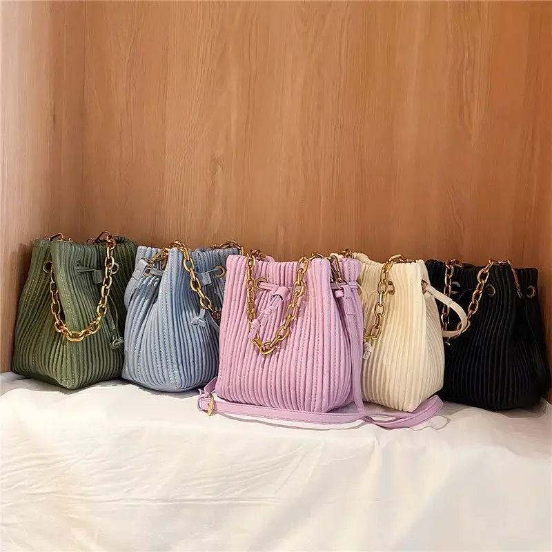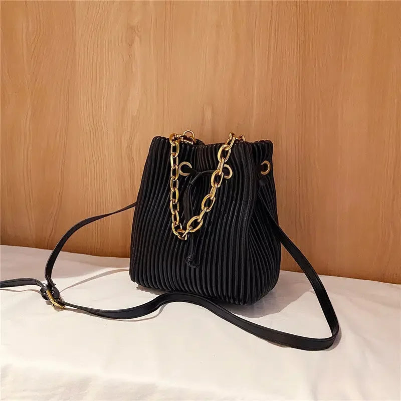 This stylish shoulder bag features a pleated design with a chic chain strap, perfect for daily use or a night out on the town.