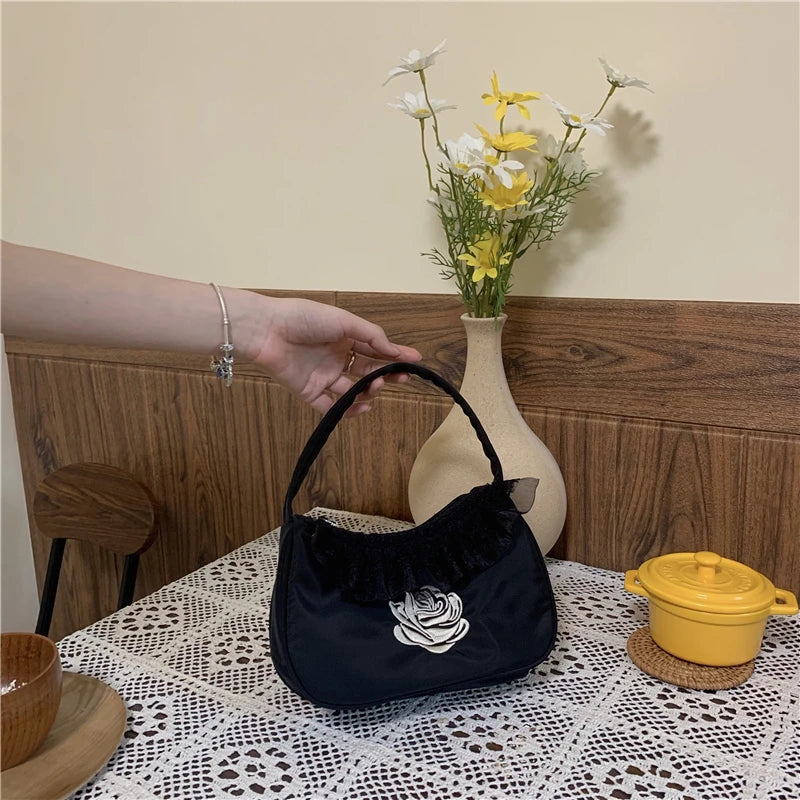 Elegant rose flower lace bag perfect for a touch of vintage charm. This one-shoulder bag is ideal for middle-aged women who appreciate retro style.