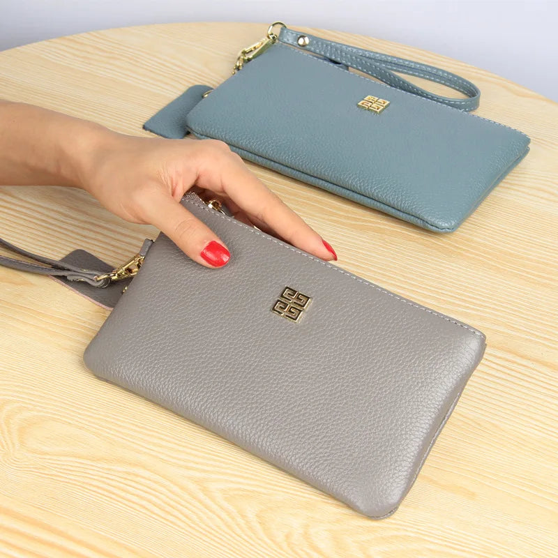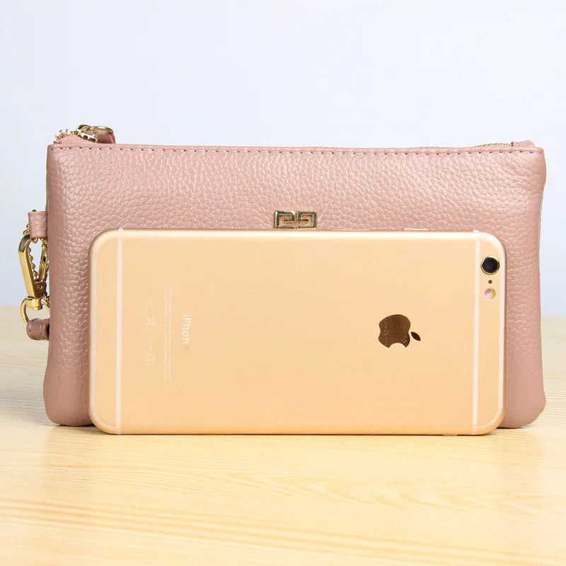 Woman Cow Leather Wallet Long Zipper Money Holder Real Leather Phone Clutch