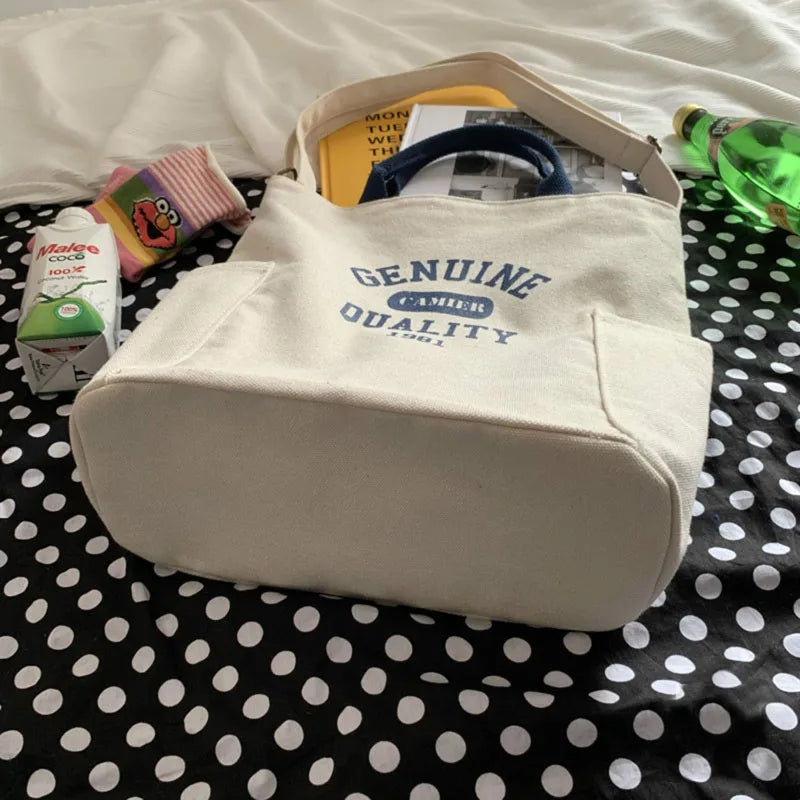 Woman Letter Printing Handbag Cotton Canvas Shoulder Messenger Bag