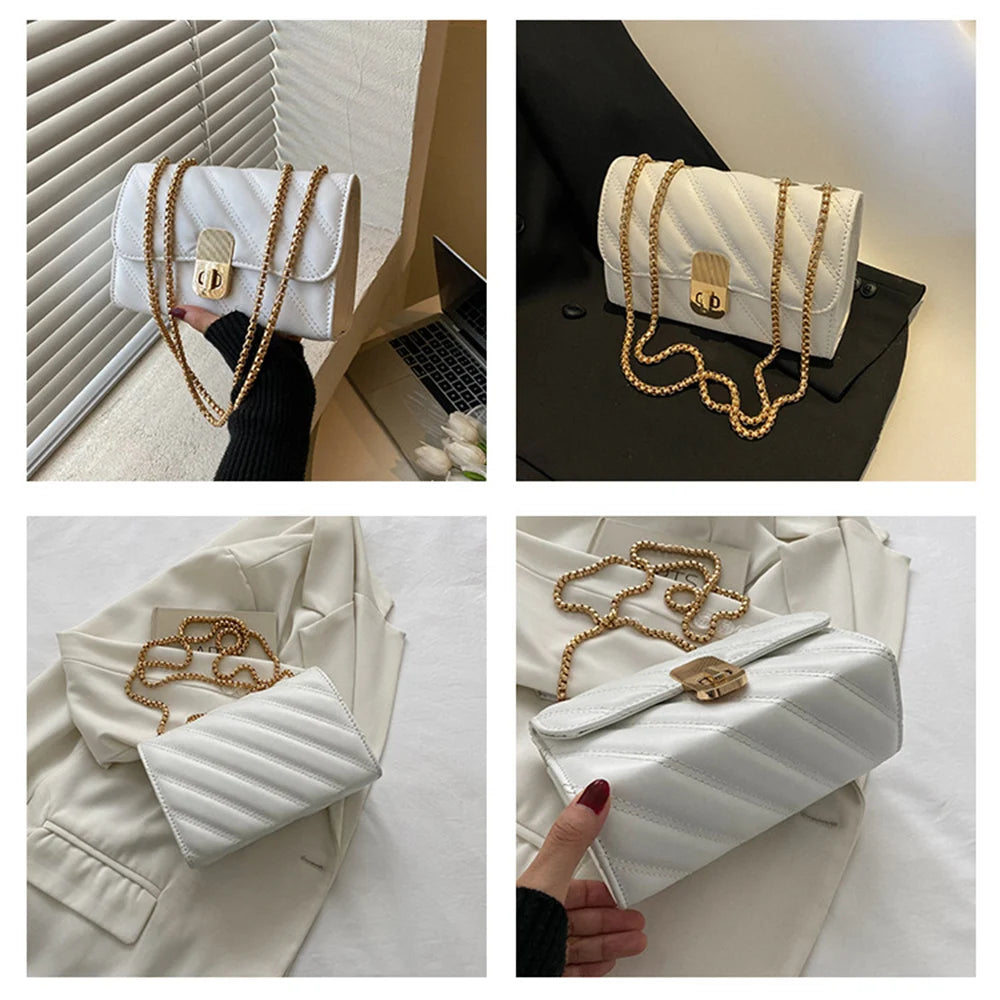 Description:Elevate your style with this chic shoulder bag featuring a trendy stripe design. Perfect for carrying your essentials in style.Features: Chic chain crossbody bag with stripe pattern Horizontal square shape for a modern look Spacious interior to hold your essentials Adjustable shoulder strap for comfortable wear Perfect for adding a...
