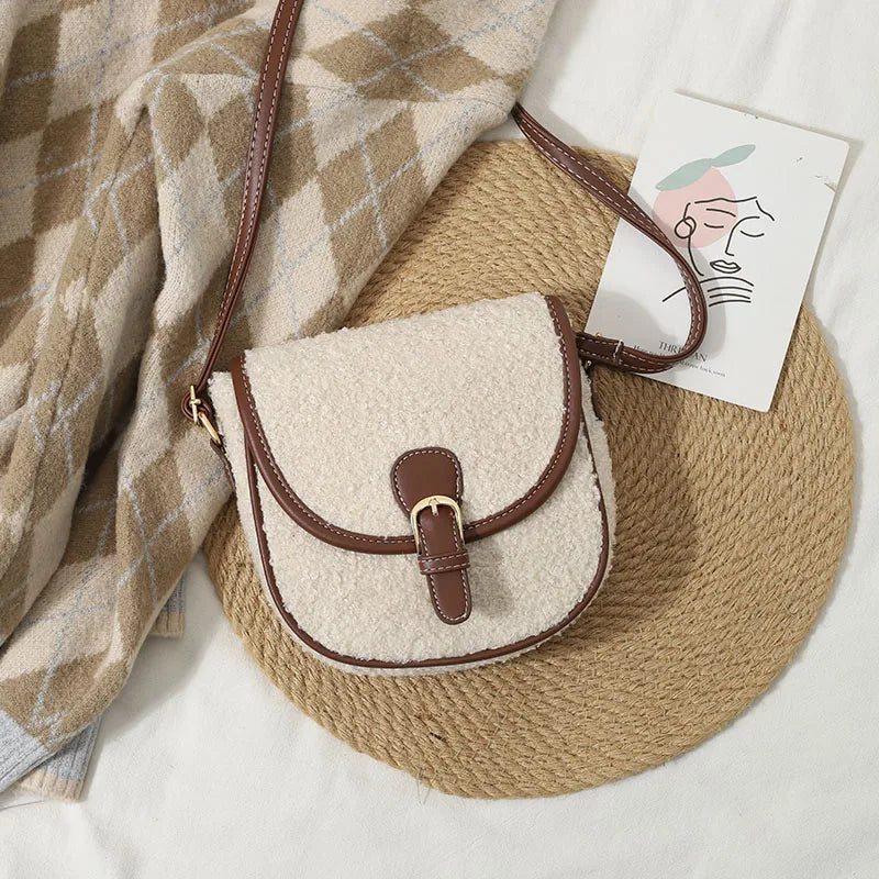 Women's Lamb Wool Shoulder Bag Messenger Saddle Bag