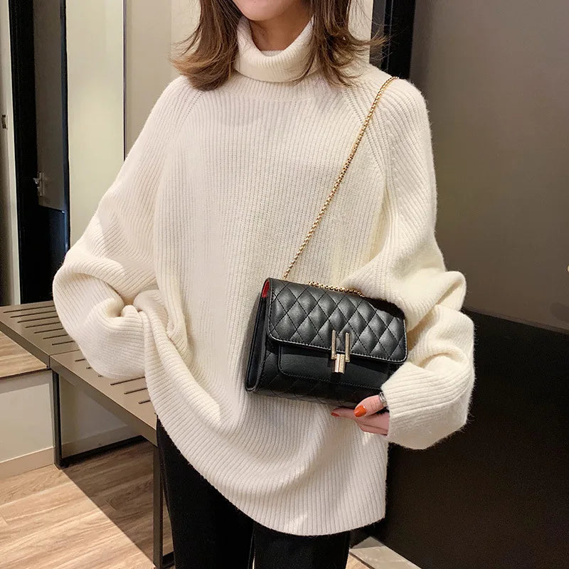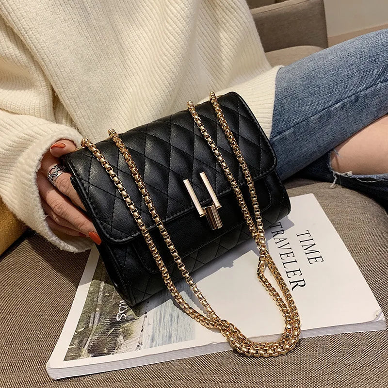 This stylish women's bag is made of high-quality PU leather, featuring a solid color design. It is a small and versatile messenger bag with a chain strap, perfect for daily use.