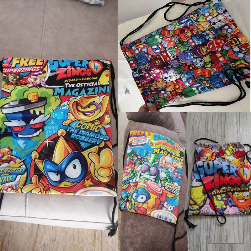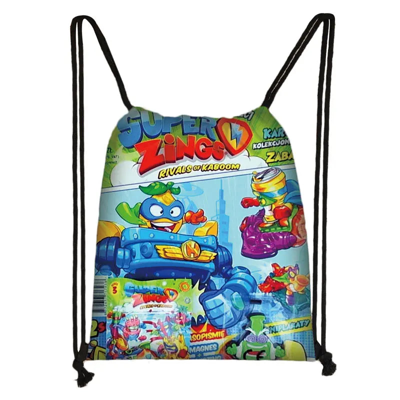 This cartoon zings drawstring bag is perfect for boys and girls. It features a fun zings printing design and is great for casual use. A practical storage bag that makes a wonderful gift.