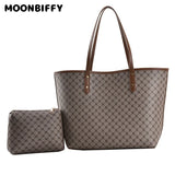2 Pcs High Capacity Tote Handbag for Women Striped Shopper Shoulder Purse