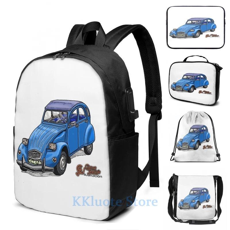 2CV USB Charge Backpack Funny Graphic Print School Bag