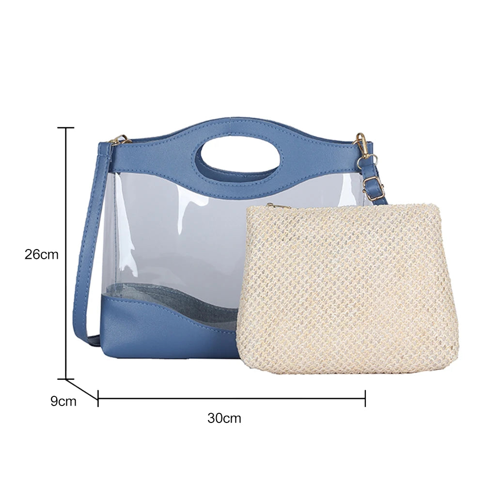 2pcs Women Shoulder Bags Straw PVC Clear Casual Totes Crossbody Handbag Sets