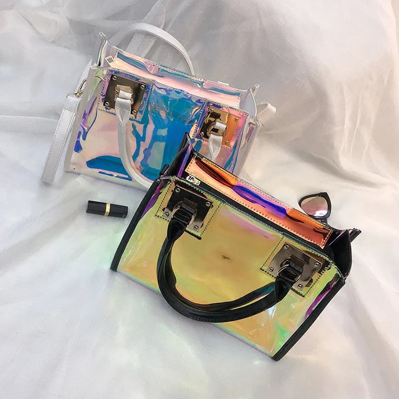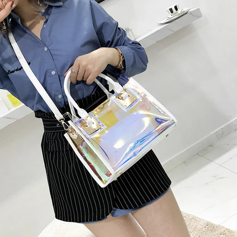 2PCS Women Transparent PVC Jelly Handbag Laser Shoulder Bags