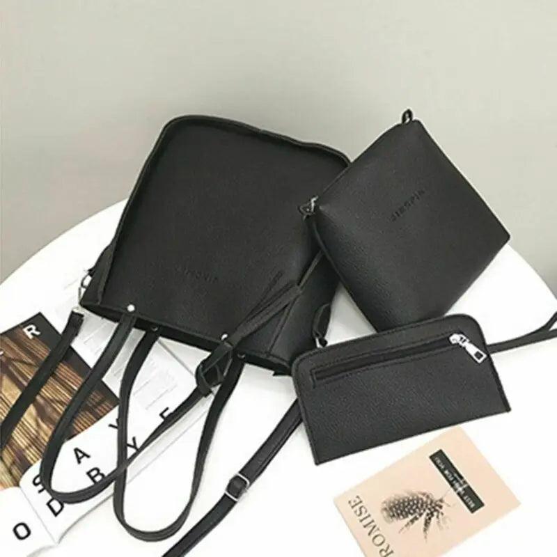 - 4-piece handbag set includes shoulder bag, tote, messenger bag, and purse