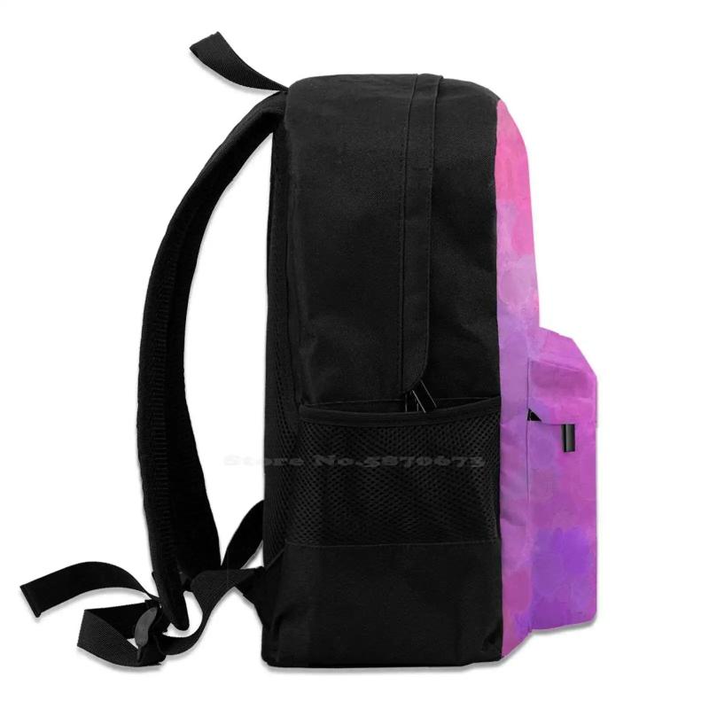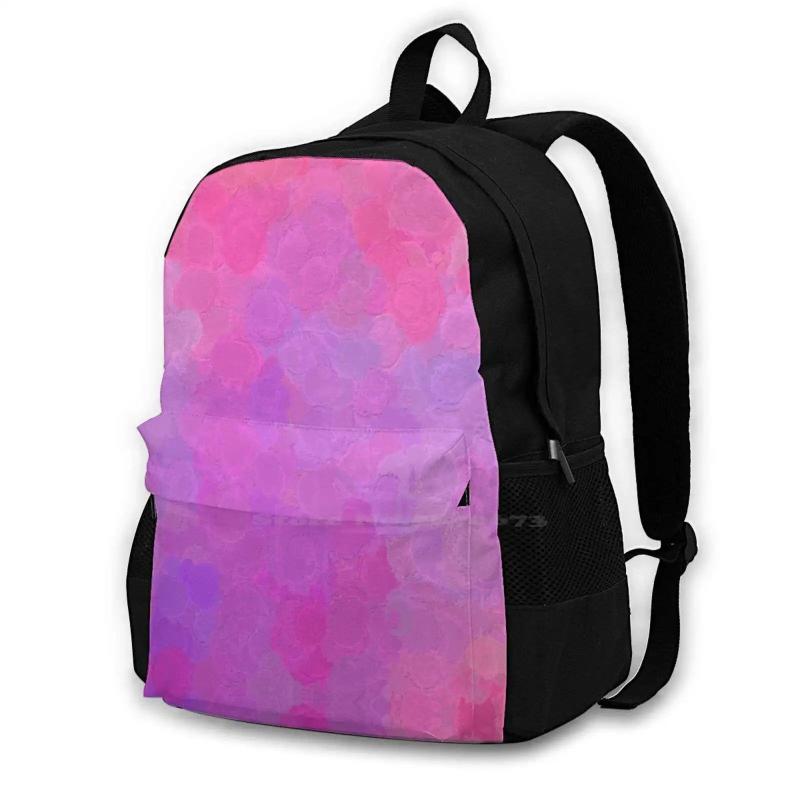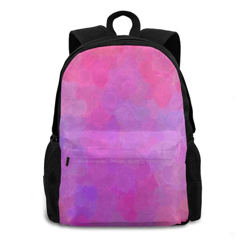 Stylish laptop travel school bag featuring an abstract design with lipstick dots in pink and purple shades, perfect for women, men, and teens.