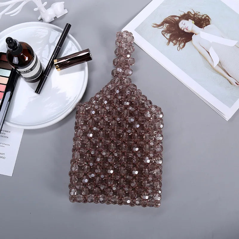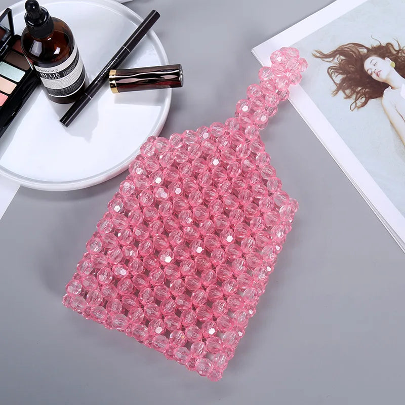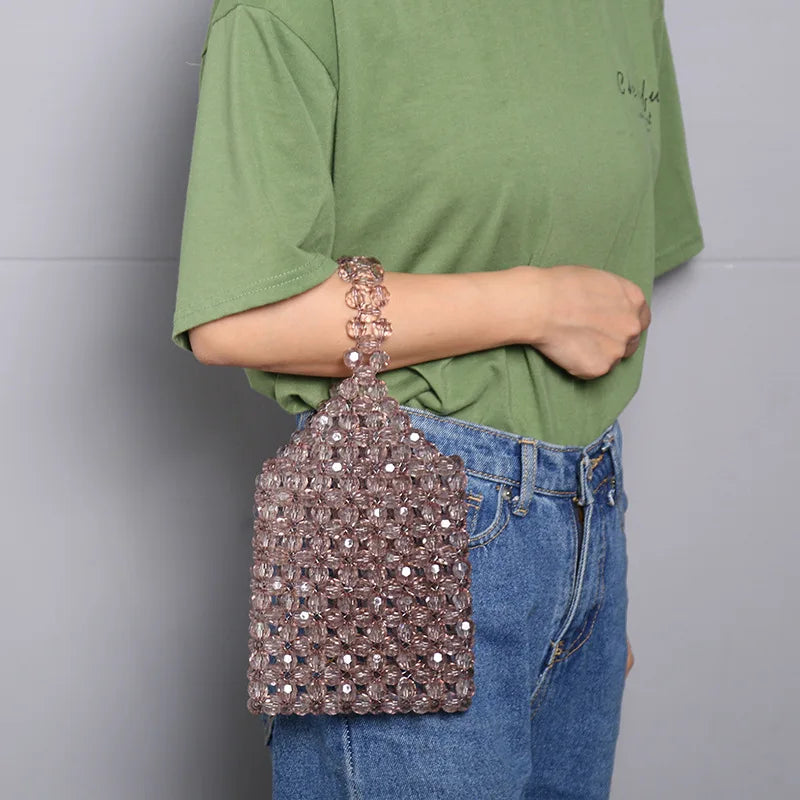 Acrylic Beading Top Handle Bag Pink Yellow Mini Crystal Beads Phone Bag