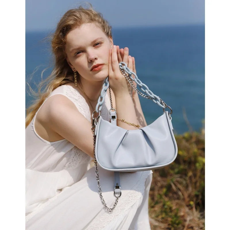 Acrylic Chain Underarm Bag Pleated Women's Messenger Bag