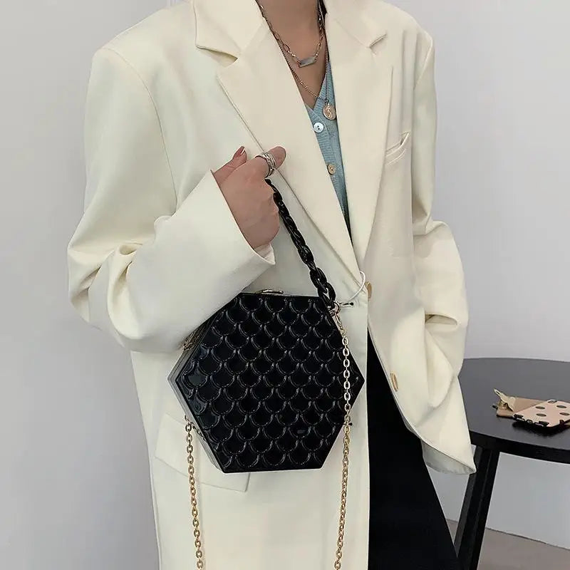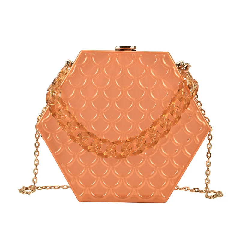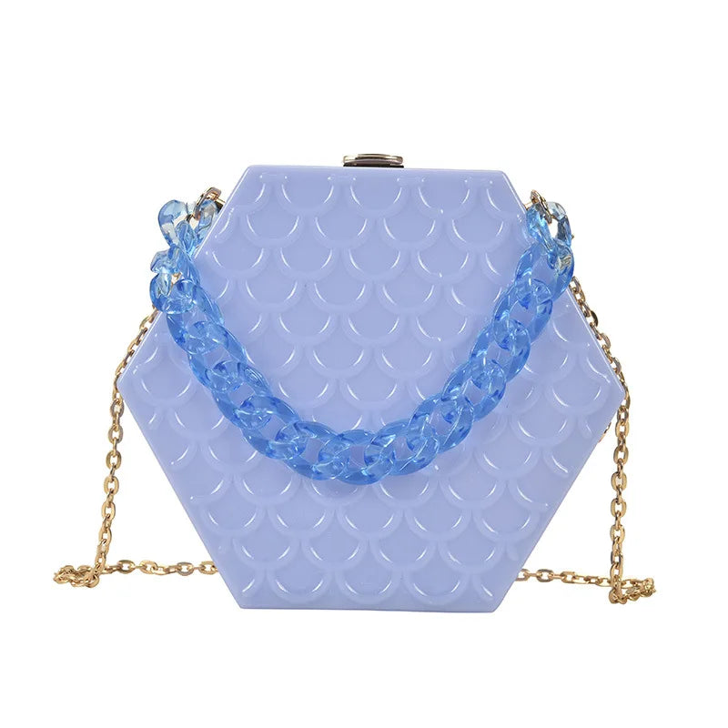 Description:This high-quality tote bag is perfect for summer with its mermaid design. It features a chain shoulder strap and can be used as a messenger bag or purse.Features: Acrylic mermaid colour box design Ideal for summer outings Made from PVC material Chain shoulder strap for convenience Versatile use as a...