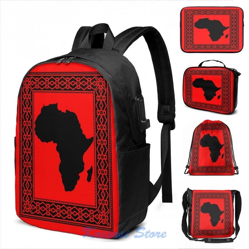Africa Map USB Charge Backpack Men Women Travel Laptop Bag