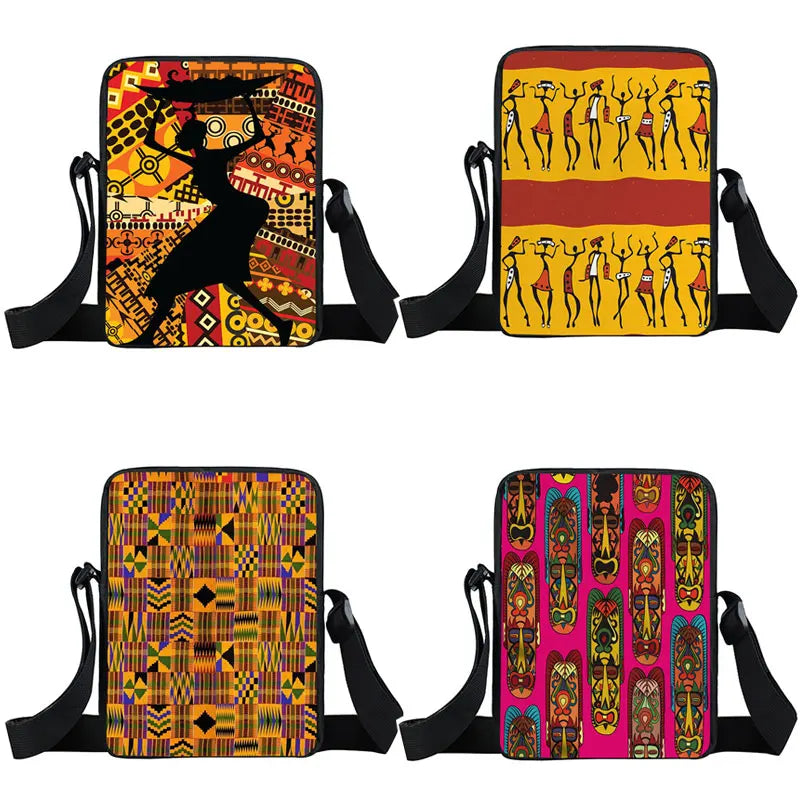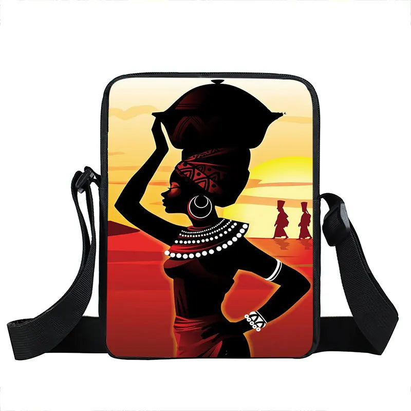 This stylish messenger bag features an Afro pattern design inspired by Africa. It can be used as a shoulder bag, crossbody bag, or small clutch. Made of durable canvas, it is perfect for carrying books, essentials, and more.