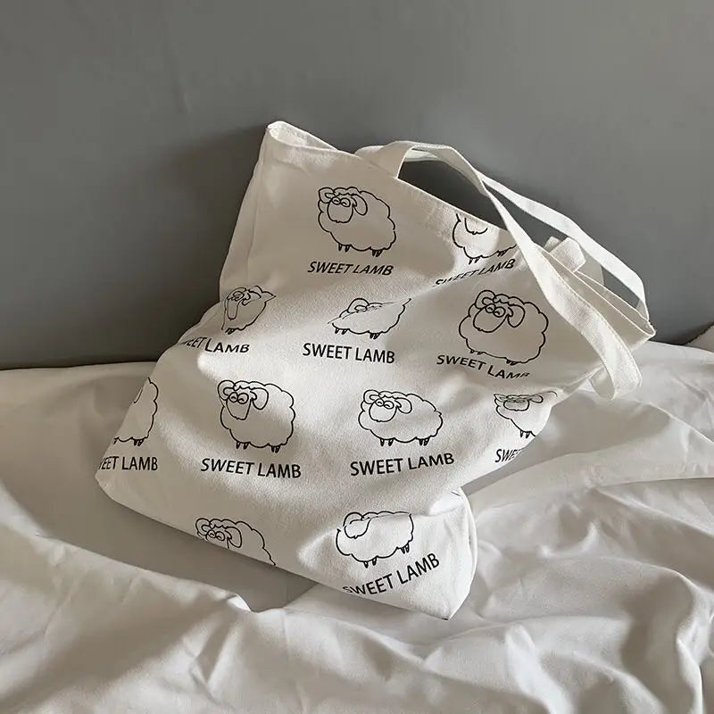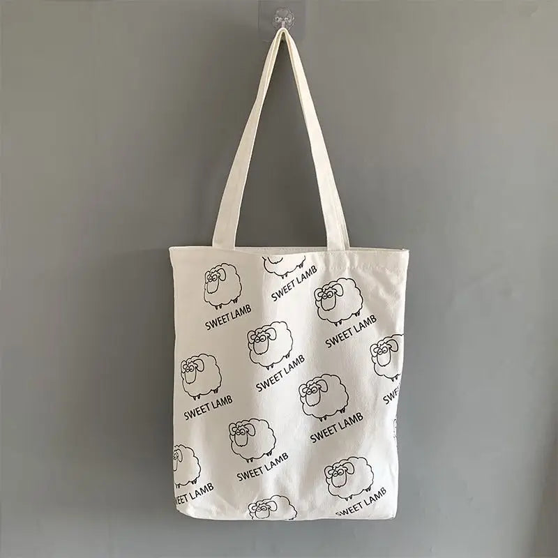 Stay stylish and organized with this autumn and winter small fresh art lamb canvas bag. It offers a large capacity and is perfect for school or daily use.