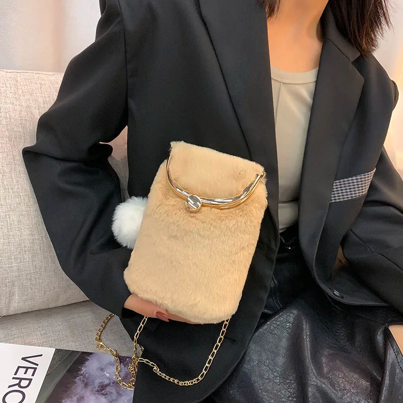 Stay trendy with this autumn furry messenger shoulder bag, a stylish plush handbag featuring a thick strap designed for women. It also doubles as a phone purse.