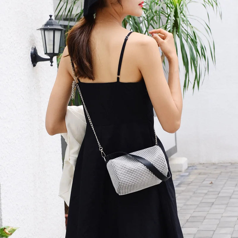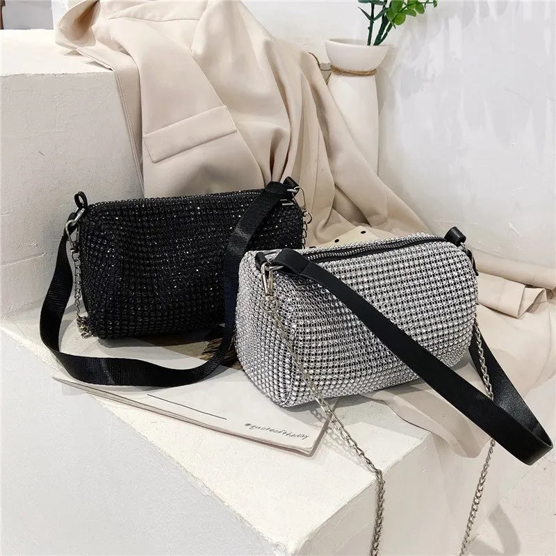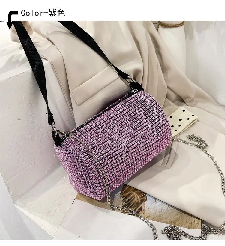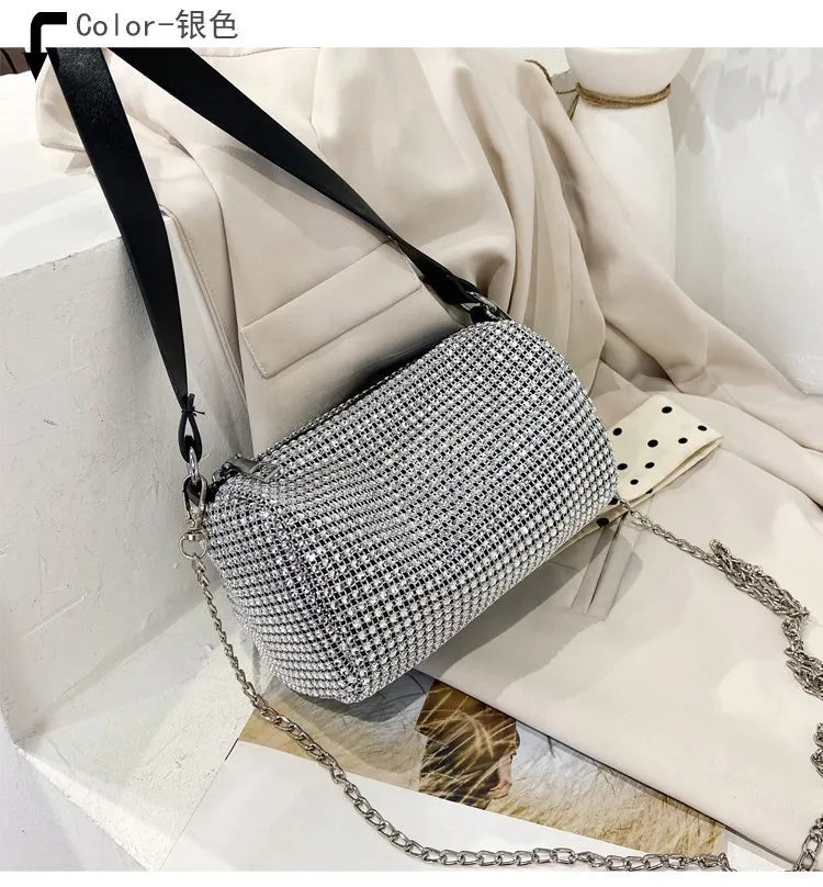 Autumn Rhinestone Women's Bucket Bag Light Diamond Handbags Chain Messenger Bag