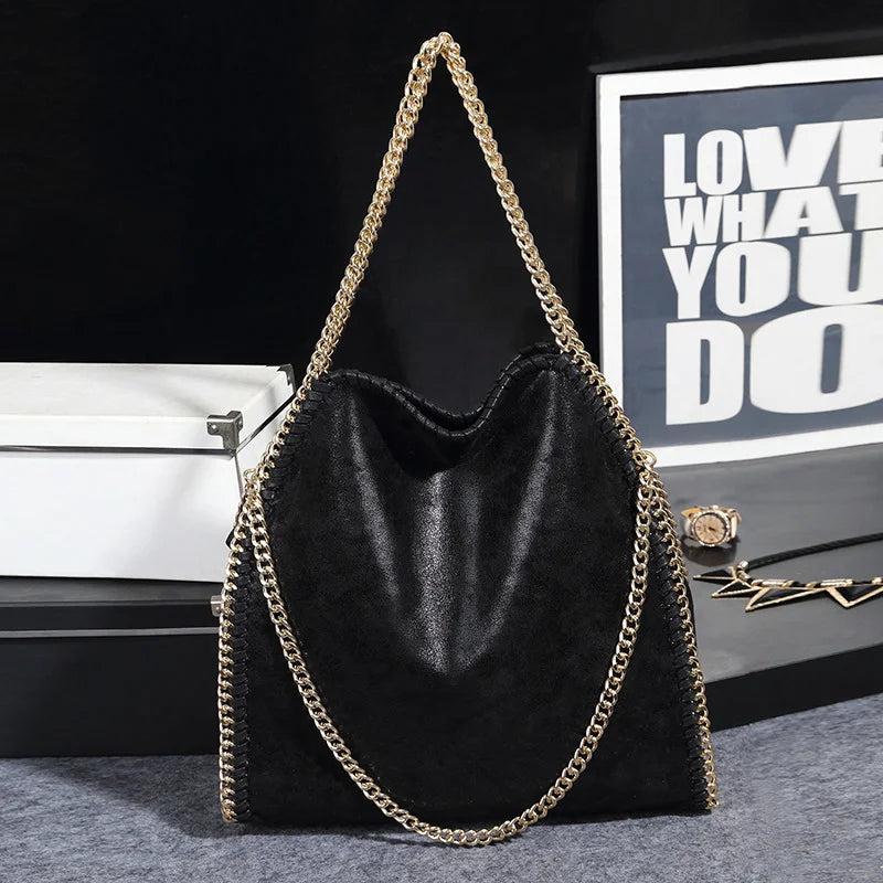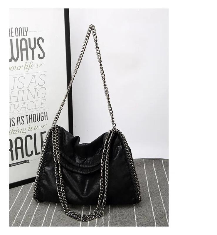 This stylish handbag is perfect for the autumn and winter season. It is made of frosted material with a chain woven design, making it a versatile and elegant accessory. The bag can be folded for easy storage and has a shoulder strap for added convenience.