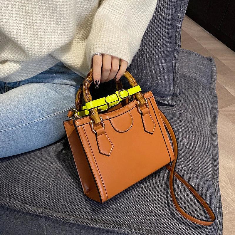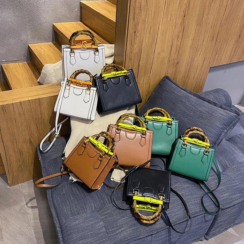Elevate your style with this versatile bamboo handle handbag that can be worn as a crossbody bag, tote, or satchel. Made from high-quality materials, this bag is perfect for any occasion.