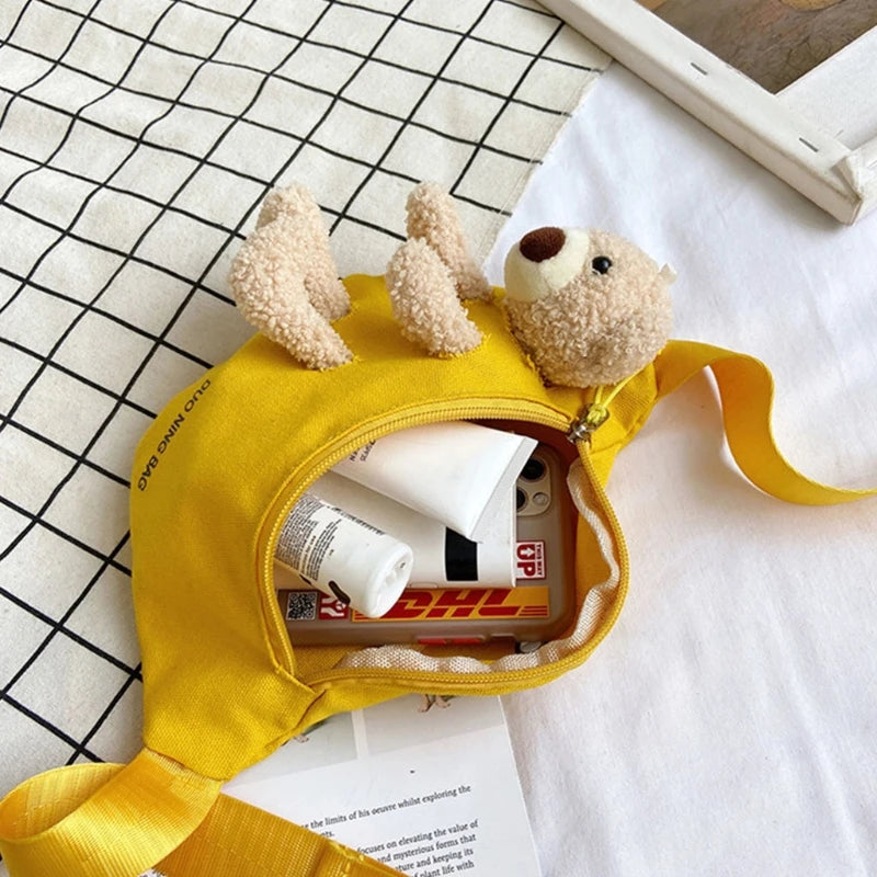 This bear canvas chest bag is perfect for daily wear, featuring a wild design and cartoon personality. It's a versatile accessory for women.