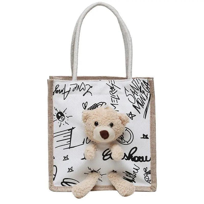 Bear Decoration Cartoon Women Handbags Student Shoulder Bag Canvas Bag