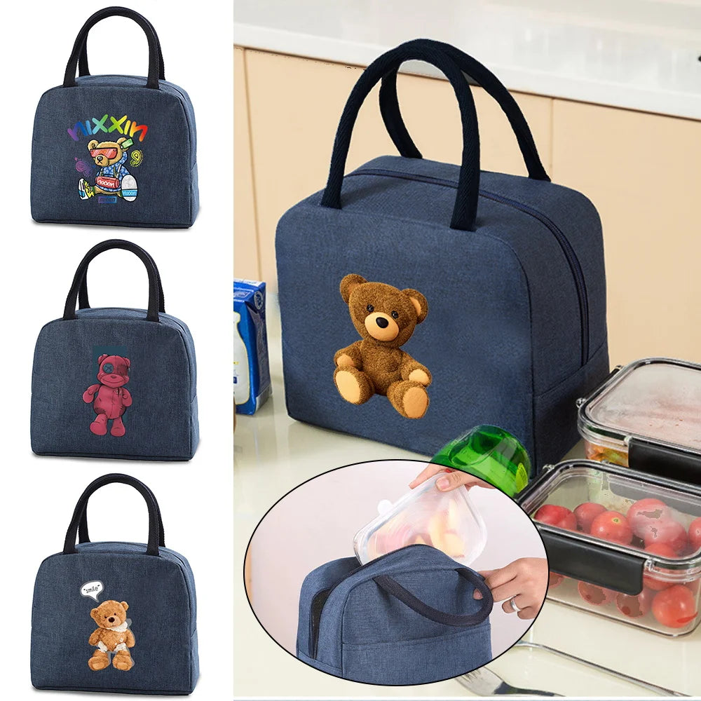Bear Print Thermal Lunch Bag Insulated Portable Food Storage Tote