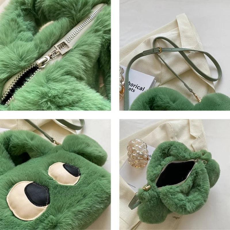 Big Eyed Puppy Shoulder Bag Soft Plush Handbag Purse Cartoon Style