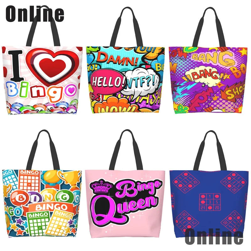 Get ready for bingo fun with this stylish and practical shoulder bag. Perfect for shopping or casual outings, this folding reusable bag is a great accessory for bingo lovers.