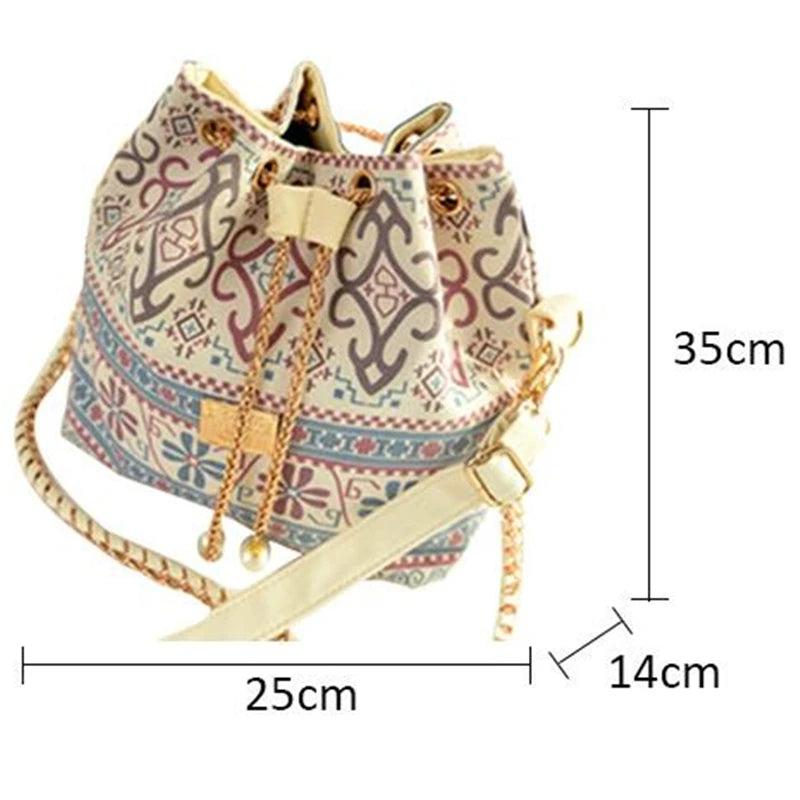 Bohemia Canvas Bucket Bag Chains Shoulder Handbags Vintage Messenger Bag