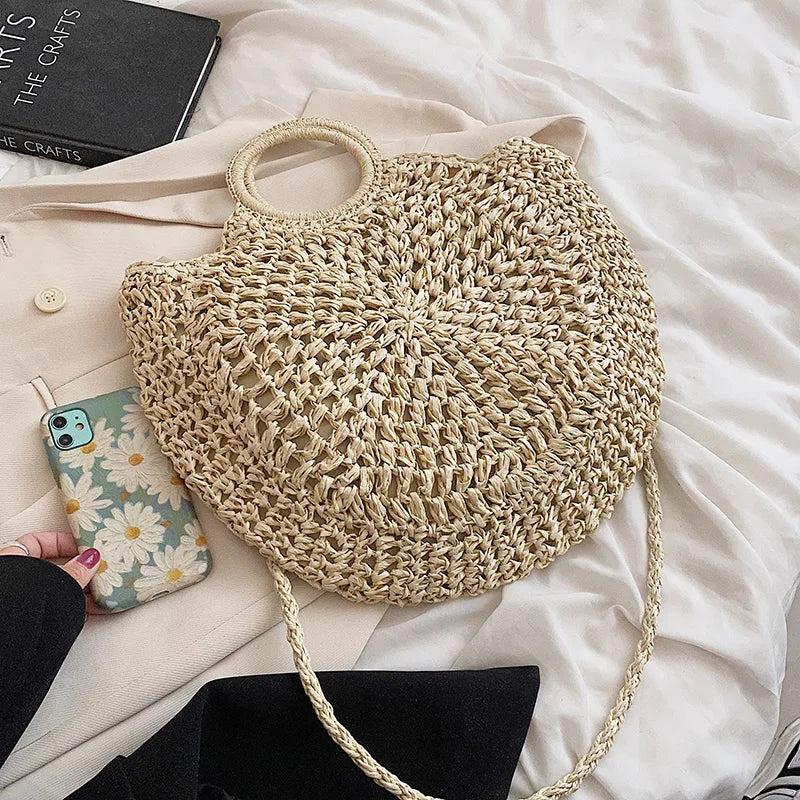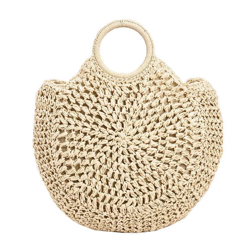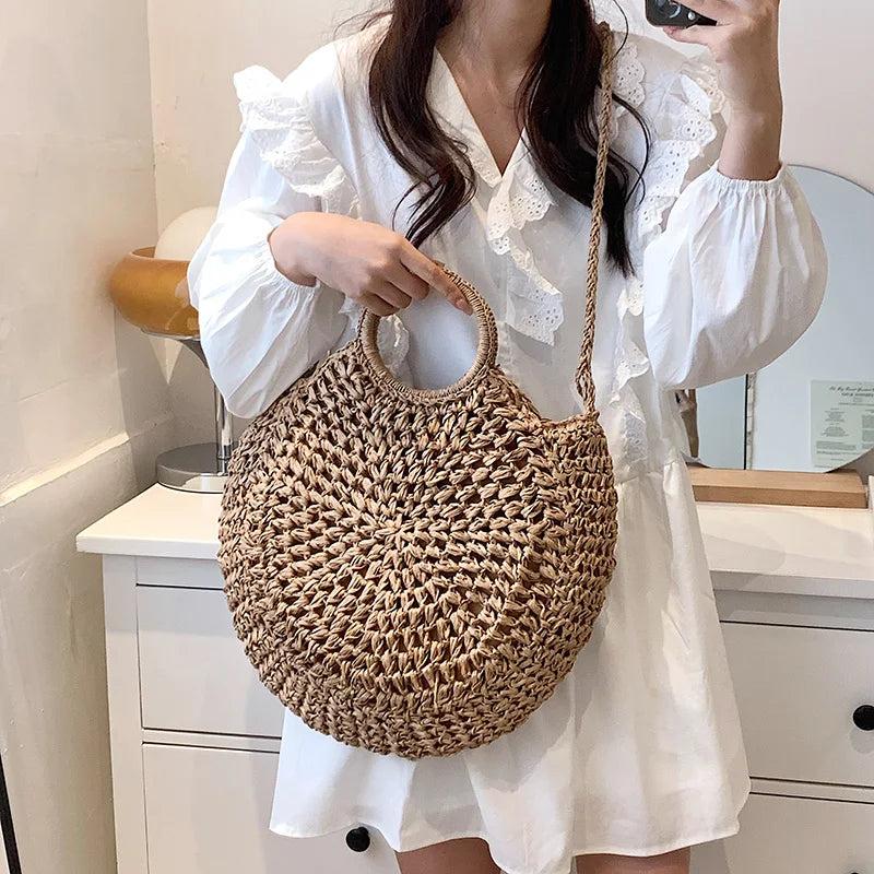 - Round straw beach bag