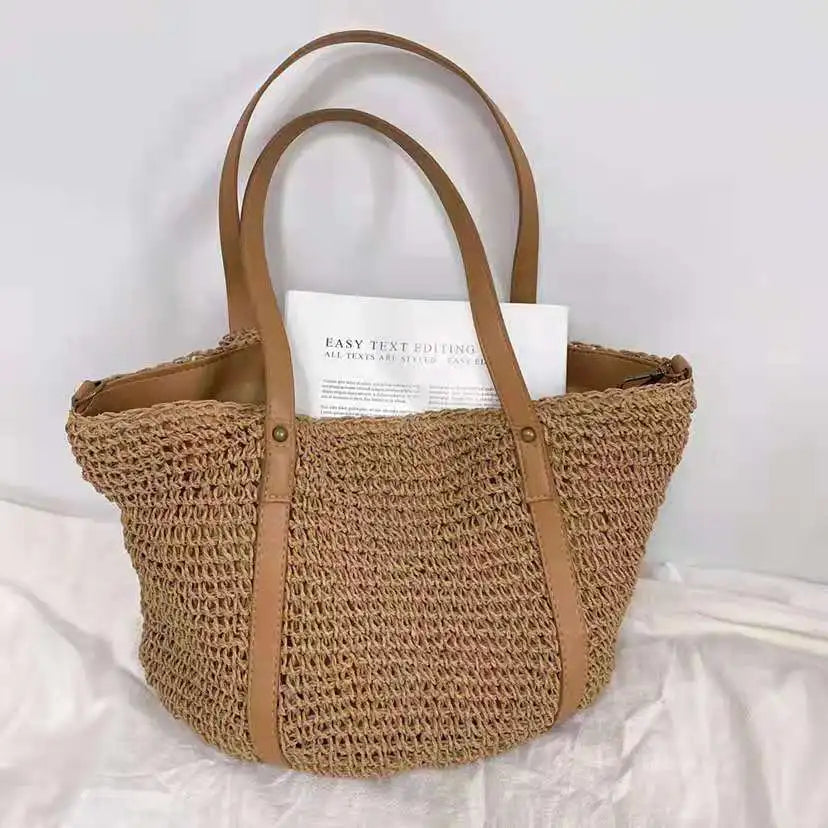 Boho Hand-woven Women's Shoulder Handbag Straw Beach Tote Bag