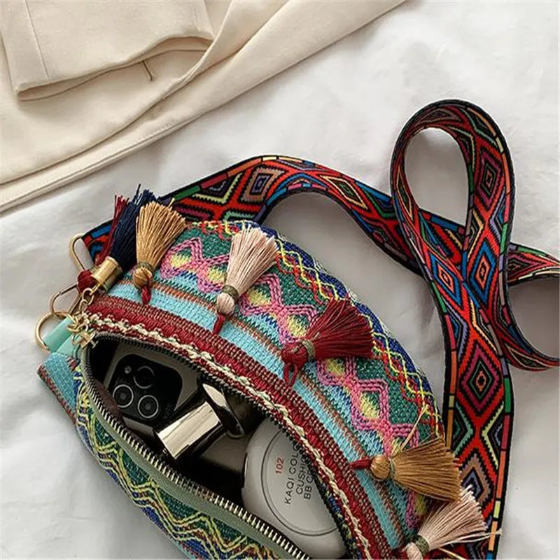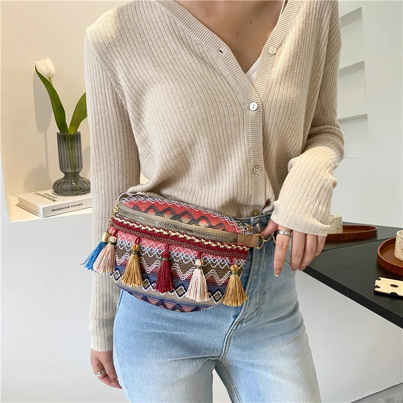 Boho Style Women Waist Bag Adjustable Strap Zipper Chest Bag