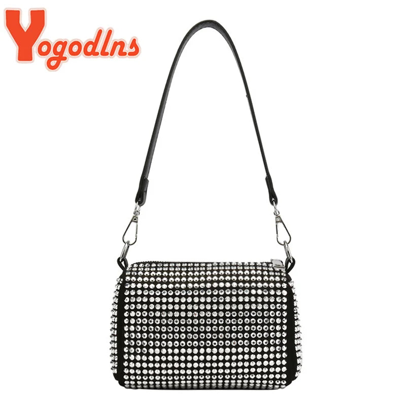 This stylish shoulder bag is made of high-quality PU leather with a bright diamond design. It features a chain strap for a chic look and has multiple compartments to keep your essentials organized.