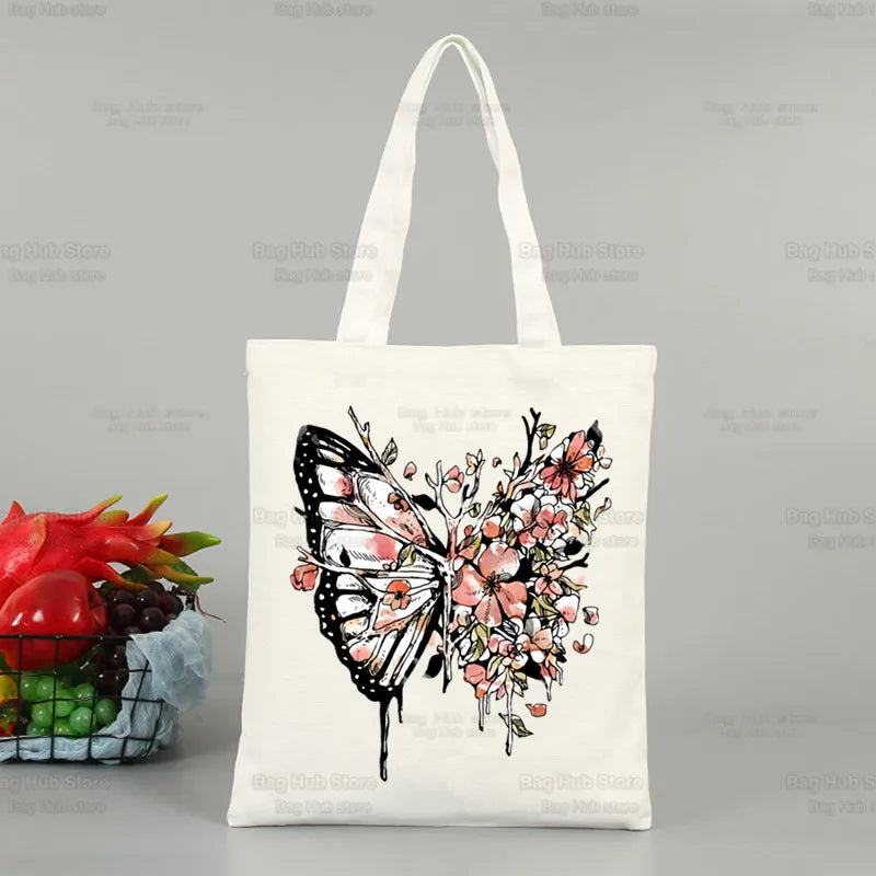 Butterfly Flying Flower Korea Ulzzang Shopper Bag Print Canvas Tote Bag