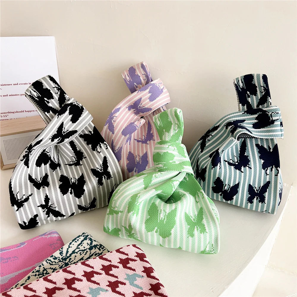 This versatile handbag features a butterfly pattern and is perfect for autumn, winter, and summer. It is handmade with high-quality knitted material.