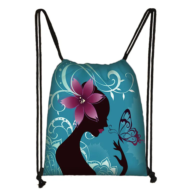 Butterfly Print Drawstring Bag Women Storage Bags Casual Softback Backpack