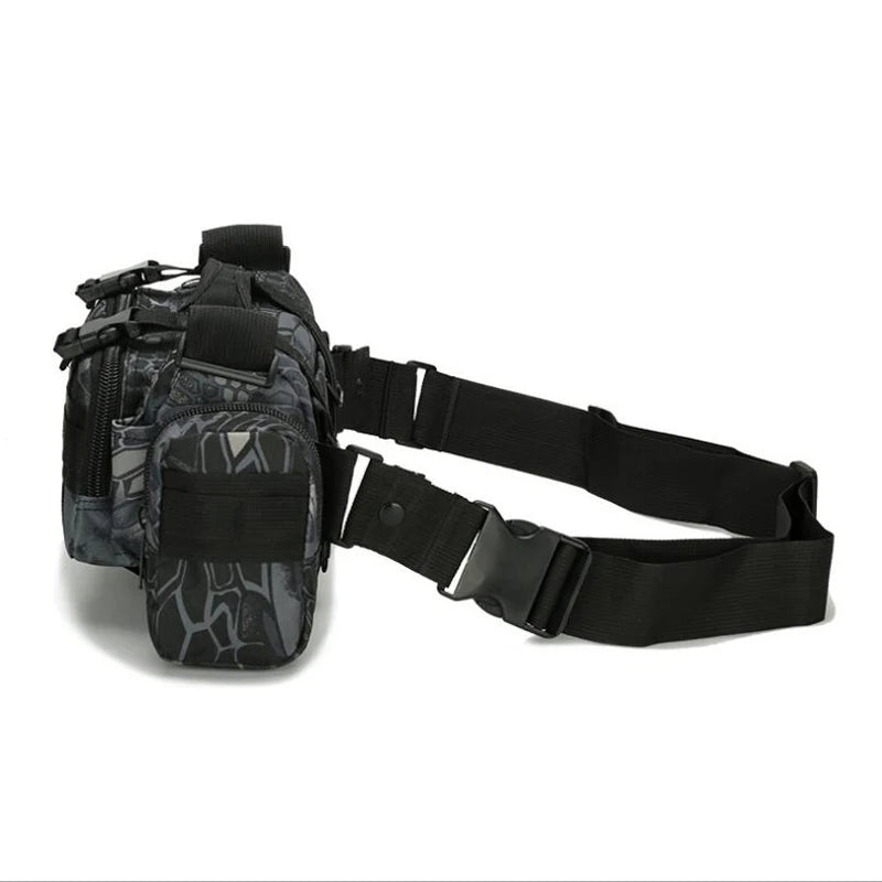Stay organized on the go with this practical camouflage waist bag, perfect for walking, mountaineering, or casual use. Made of waterproof nylon, it's ideal for both men and women.