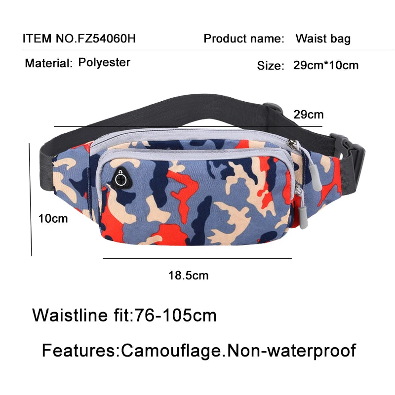 Camouflage Waist Bag with Earphone Hole for Men Women