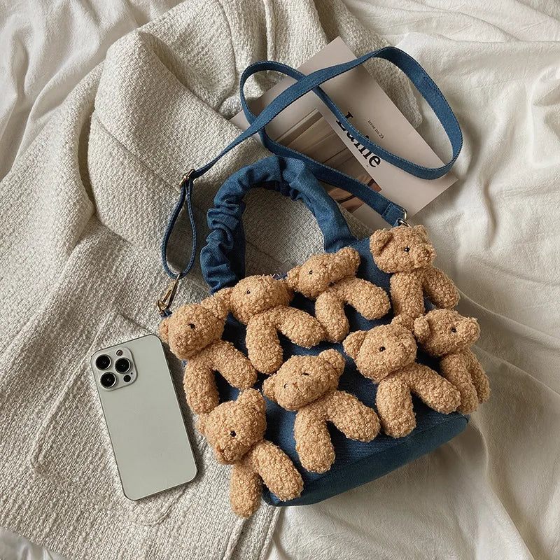 Canvas Bear Shoulder Bag Women Casual Tote Party Fashionable Messenger