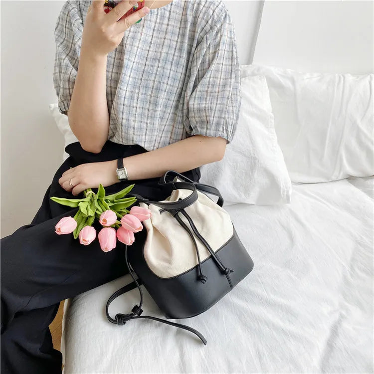 Canvas Bucket Shoulder Bag Tote Handbag Patchwork Crossbody Bags